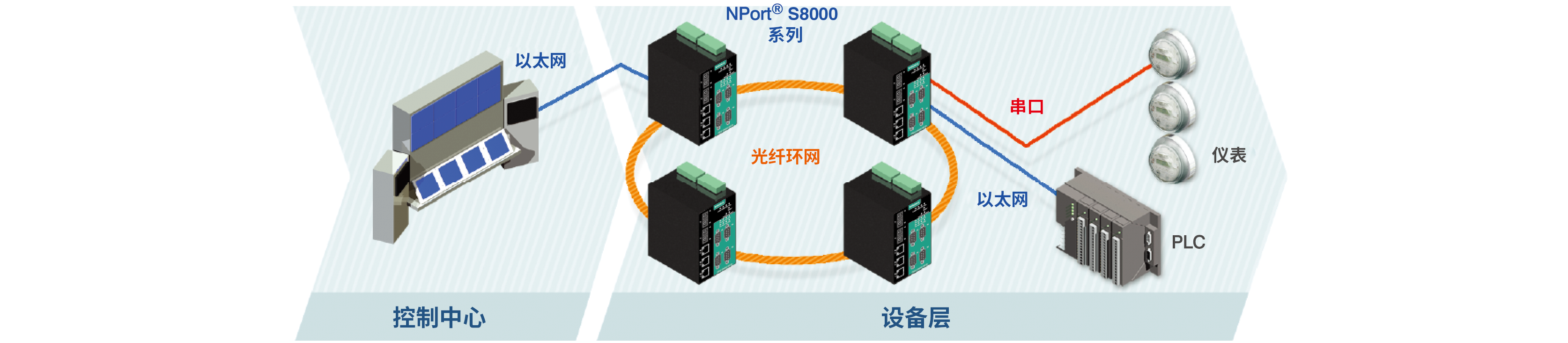 工業(yè)自動(dòng)化的設(shè)備級(jí)通信網(wǎng)絡(luò)非常關(guān)鍵,因?yàn)樗鼈冇糜诳刂坪捅O(jiān)控設(shè)備過(guò)程。這些通信的可靠性取決于設(shè)備級(jí)的環(huán)網(wǎng)冗余,環(huán)網(wǎng)冗余提供快速網(wǎng)絡(luò)故障檢測(cè)和重新配置功能,以支持要求嚴(yán)苛的控制應(yīng)用。NPort S8000 系列將 NPort 設(shè)備聯(lián)網(wǎng)服務(wù)器的全功能與工業(yè)交換機(jī)相集成,可同時(shí)運(yùn)行串口設(shè)備和以太網(wǎng)設(shè)備。